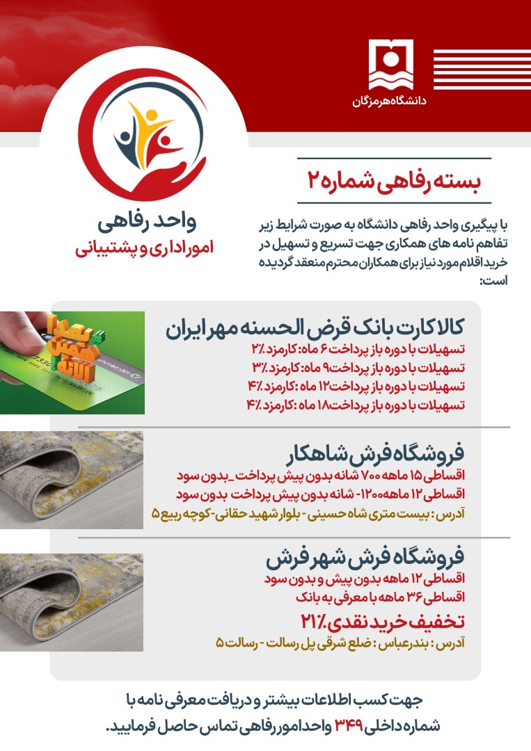 بسته رفاهی شماره دو ( کالاکارت بانک قرض الحسنه مهر ایران، فروشگاه فرش )