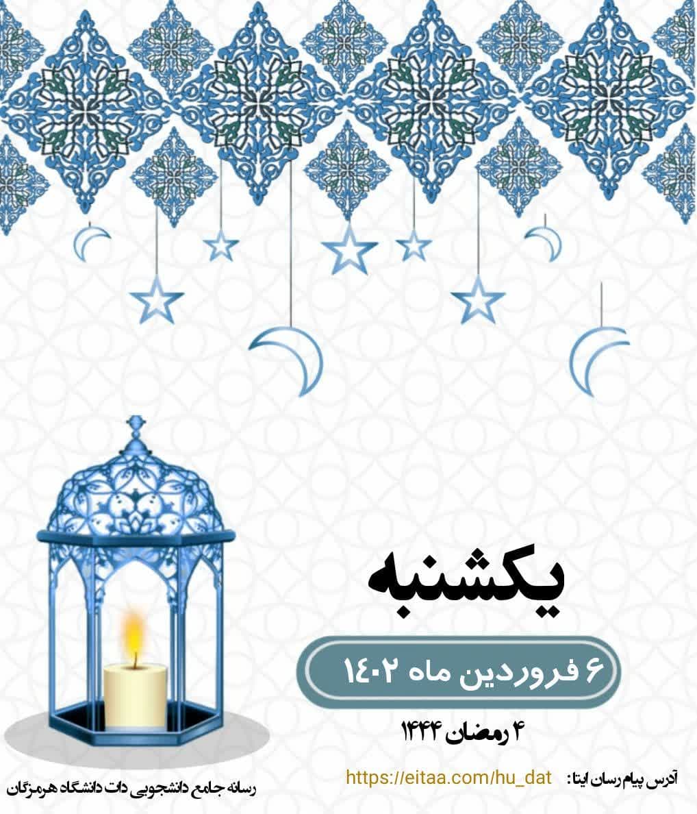 یکشنبه 6 فروردین 1402 -4 رمضان 1444 -رسانه جامع دانشجویی دانشگاه هرمزگان
