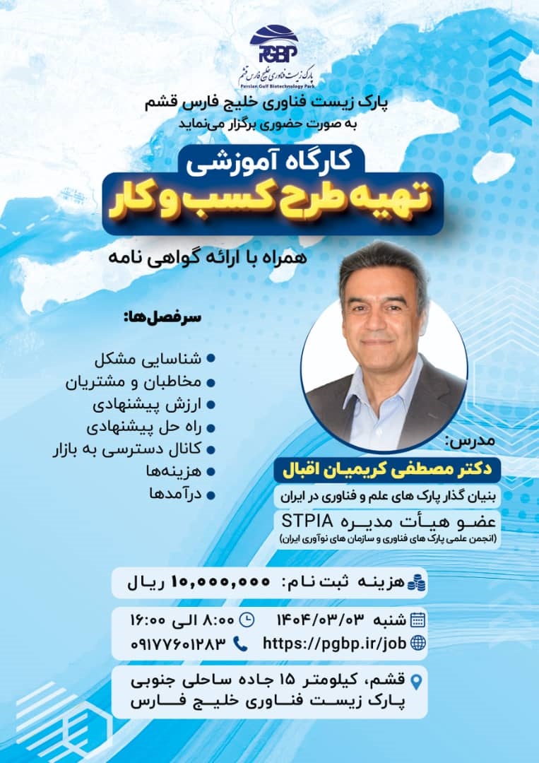 پارک زیست فناوری خلیج فارس قشم با همکاری وزارت علوم، تحقیقات و فناوری برگزار می‌نماید: