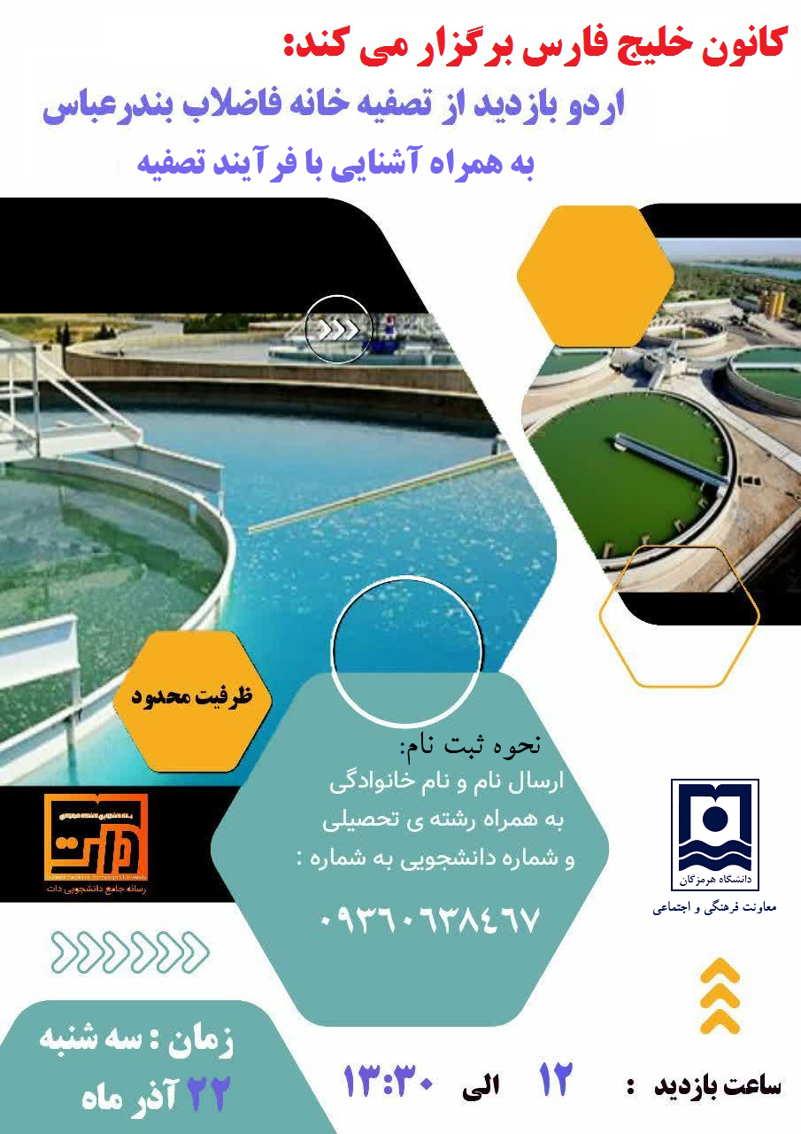 کانون خلیج فارس برگزار می کند: بازدید از تصفیه خانه فاضلاب بندرعباس