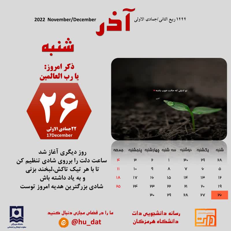 تقویم امروز ۲۶آذرماه