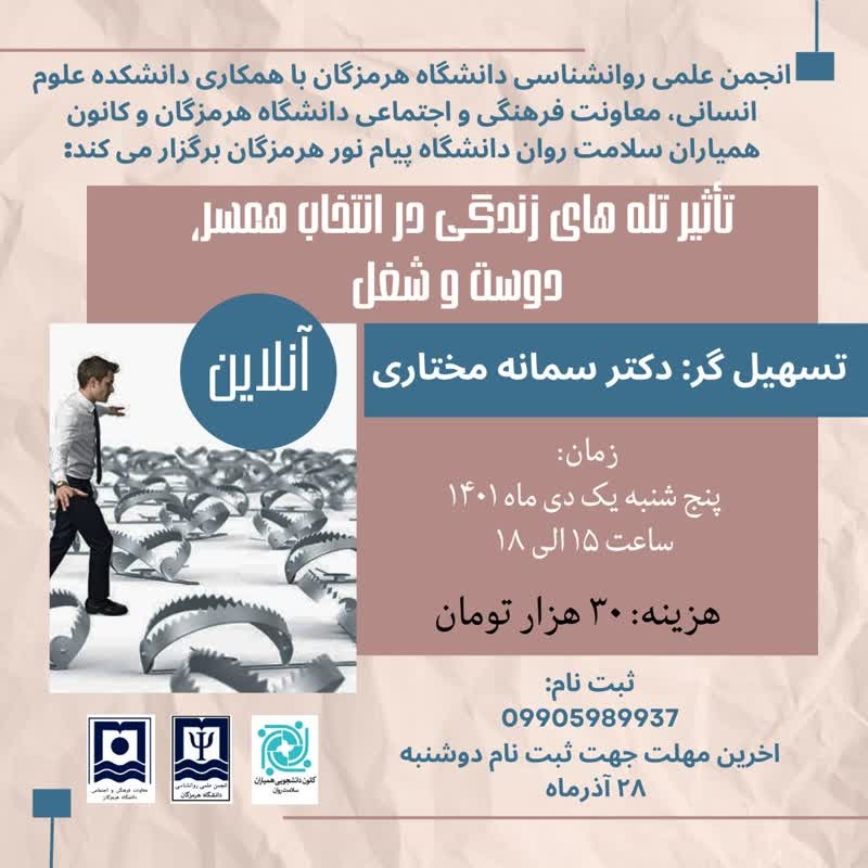 کارگاه تاثیر تله های زندگی در انتخاب دوست، همسر و شغل