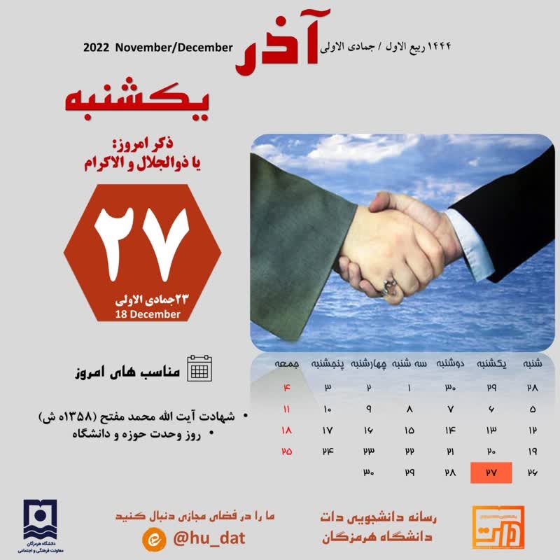 تقویم امروز۲۷آذر ماه