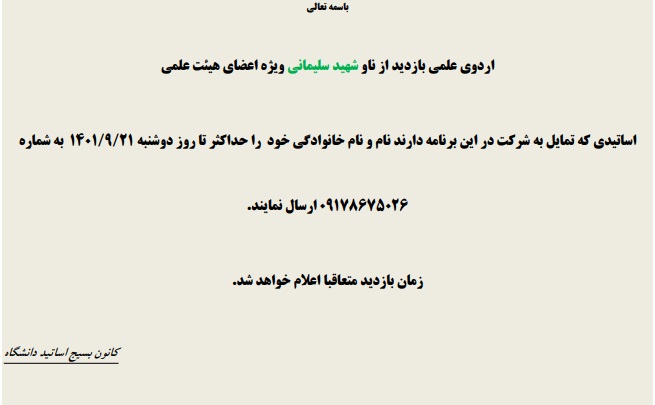 اردو و بازدید علمی ( ویژه اعضاء محترم هیات علمی)
