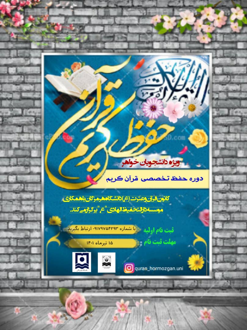 کانون قرآن و عترت (ع) دانشگاه هرمزگان با همکاری موسسه دارالتحفیظ الهادی (ع) برگزار می کند