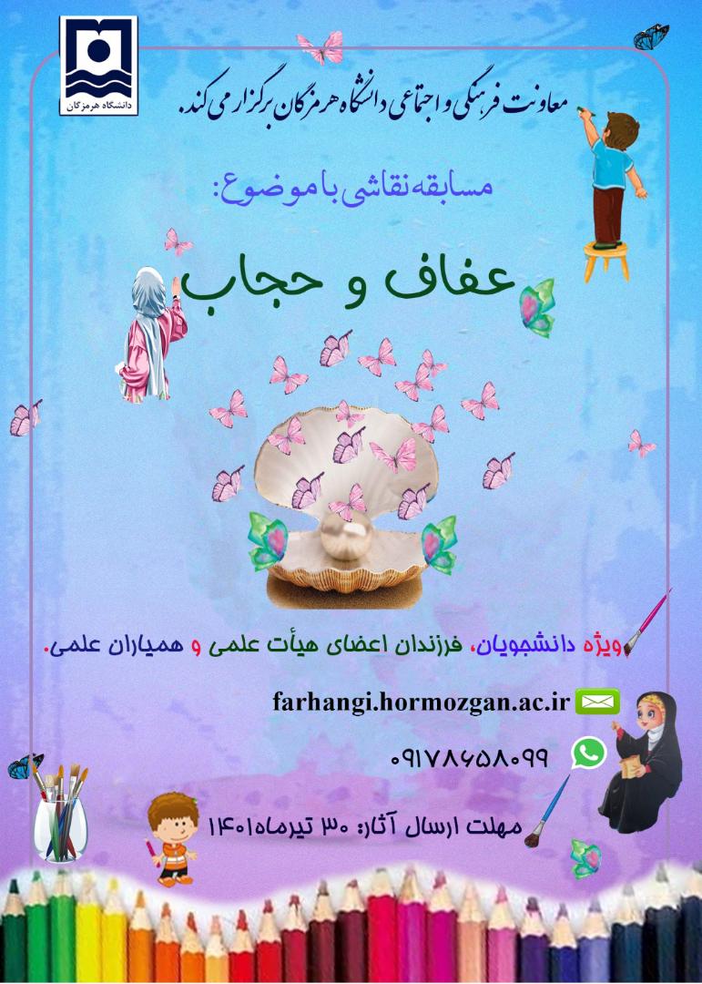 معاونت فرهنگی و اجتماعی دانشگاه هرمزگان برگزار می‌ کند: مسابقه نقاشی با موضوع: عفاف و حجاب