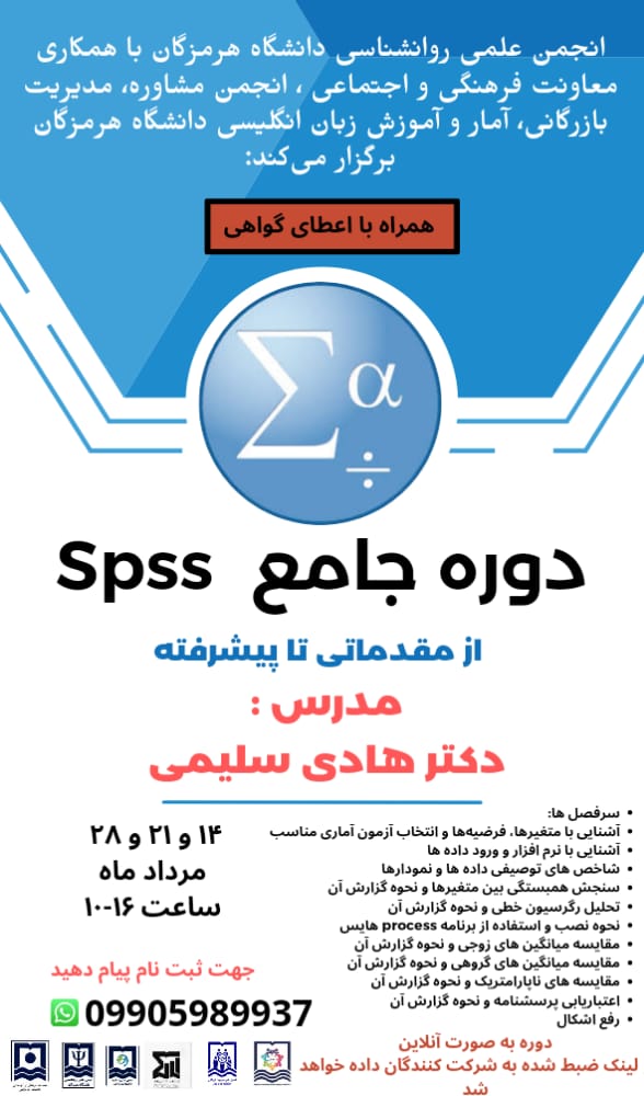 دومین دوره جامع Spss از مقدماتی تا پیشرفته توسط انجمن علمی روانشناسی دانشگاه هرمزگان