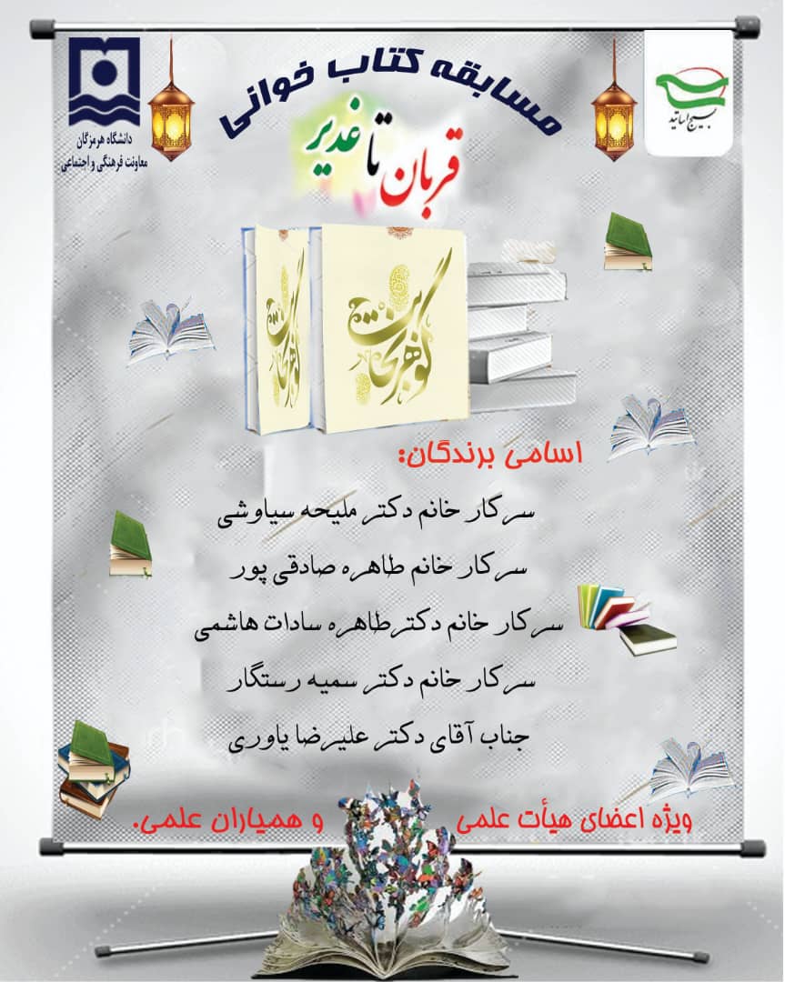 نتایج مسابقه کتاب خوانی قربان تا غدیر ویژه اعضای هیأت علمی و همیاران علمی