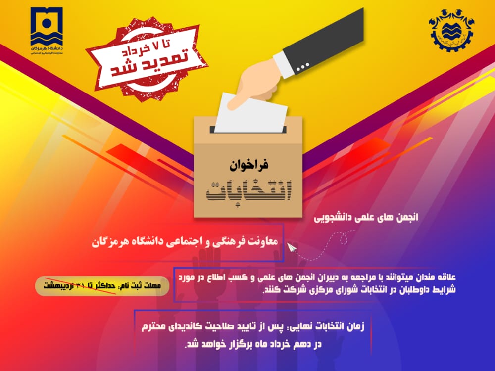 فراخوان انتخابات انجمن‌های علمی تا 7 خرداد تمدید شد.