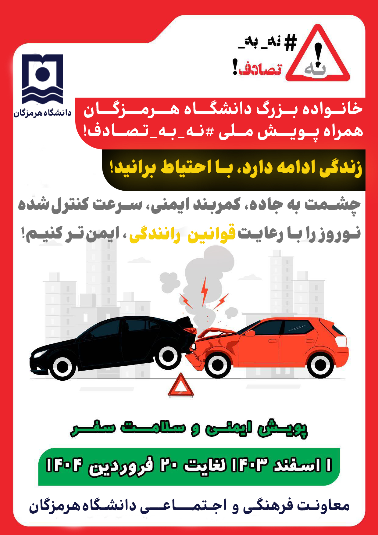 خانواده بزرگ دانشگاه هرمزگان همراه پویش ملی "نه به تصادف!"