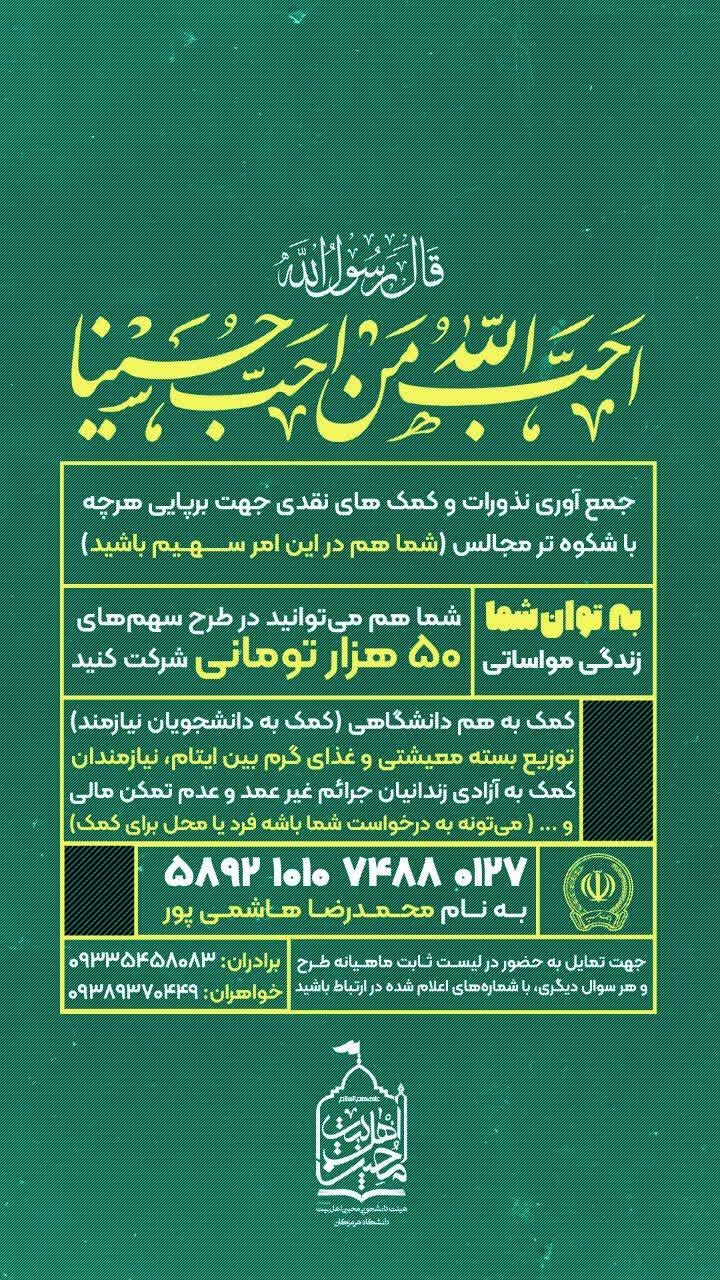 به همت هیئت دانشجویی محبین اهل‌بیت علیهم‌السلام دانشگاه هرمزگان برگزار می‌شود: