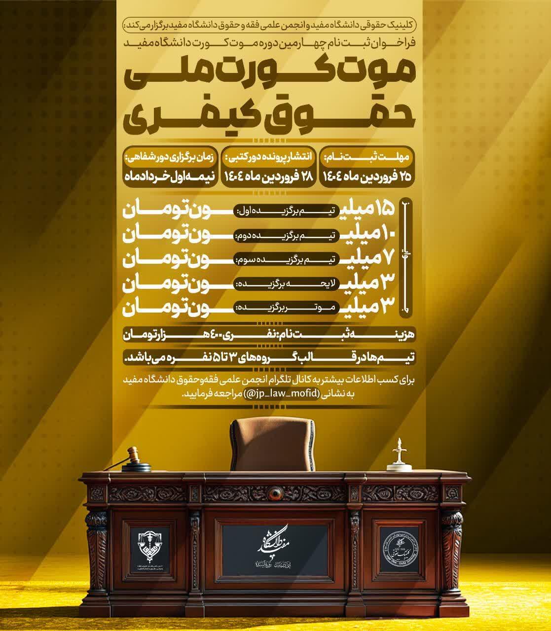 فراخوان ثبت نام چهارمین دوره موت کورت دانشگاه مفید (موت کورت ملی حقوق کیفری)