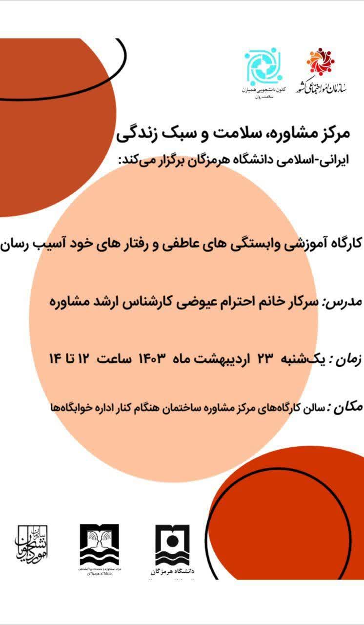 کارگاه آموزشی وابستگی های عاطفی و رفتارهای خود آسیب رسان