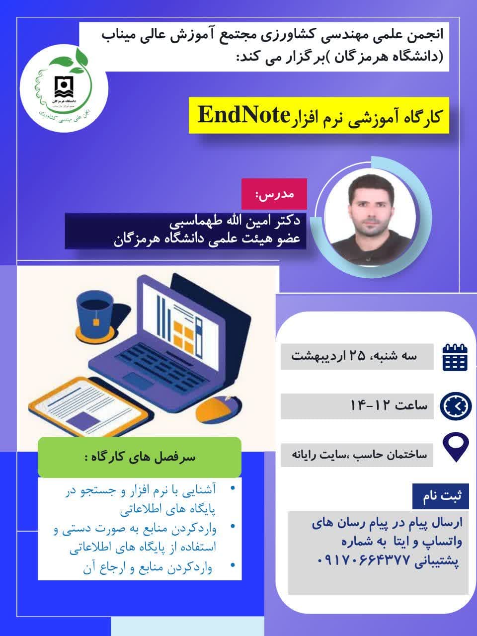 انجمن علمی مهندسی کشاورزی مجتمع آموزش عالی میناب (دانشگاه هرمزگان) برگزار می‌کند