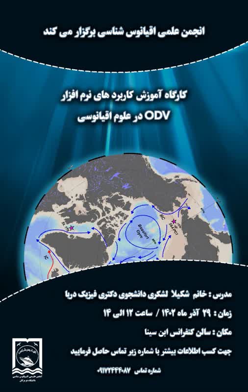 برگزاری کارگاه آموزشی کاربردهای نرم‌افزار odv در علوم اقیانوسی