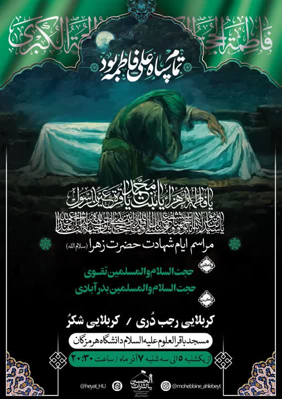 برگزاری ایام فاطمیه یکشنبه 5 آذر ماه در مسجد باقرالعلوم