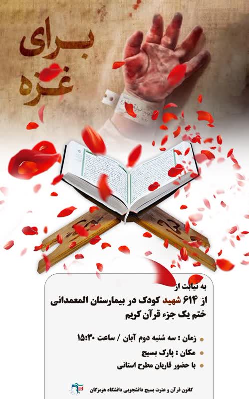برگزاری مراسم ختم یک جزء قرآن کریم به نیابت از کودکان مظلوم غزه در بیمارستان المعمدانی