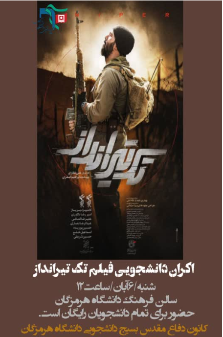 اکران دانشجویی فیلم سینمایی :تک تیرانداز شنبه 6 آبان ماه در محل سالن فرهنگ دانشگاه هرمزگان