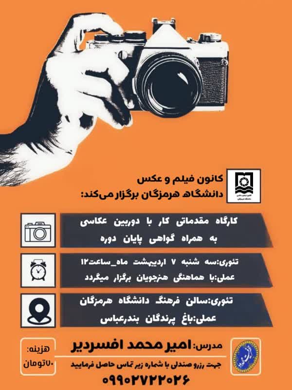 کانون فیلم و عکس دانشگاه هرمزگان برگزار می‌کند