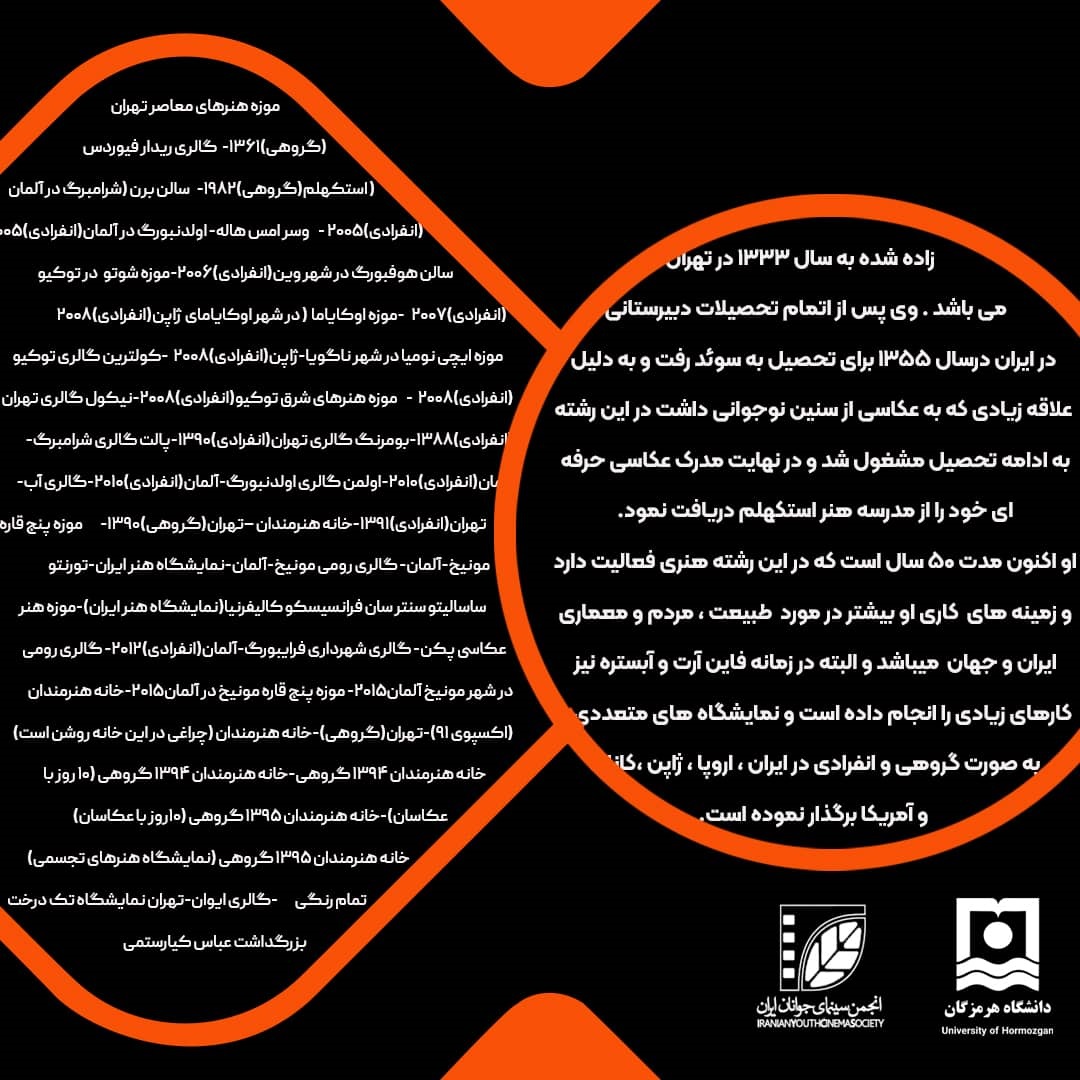 کانون عکس و فیلم دانشگاه هرمزگان با همکاری انجمن سینمای جوانان هرمزگان برگزار می‌نماید: