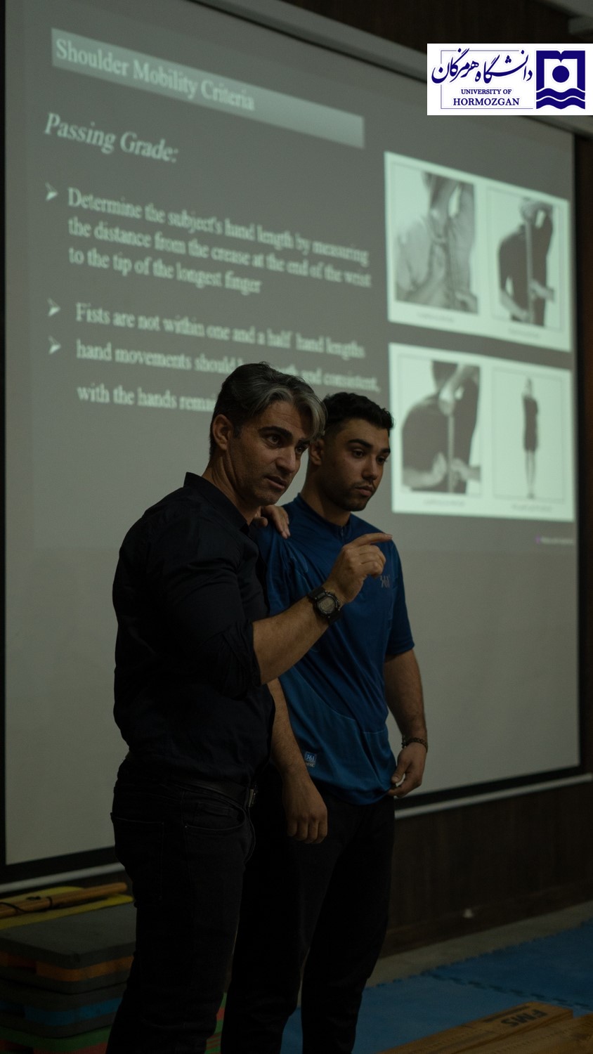بخش دوم کارگاه به زمانبندی استفاده از تمرینات فانکشنال و نحوه ارزیابی اختلالات عملکردی بدن اختصاص داشت. در این بخش، شرکتکنندگان با ۷ آزمون ارزیابی عملکرد حرکتی آشنا شدند که به شناسایی نقاط حساس و آسیبپذیر بدن کمک میکند. این بخش به صورت تئوری و عملی برگزار شد و یکی از شرکتکنندگان به عنوان نمونه مورد ارزیابی قرار گرفت.