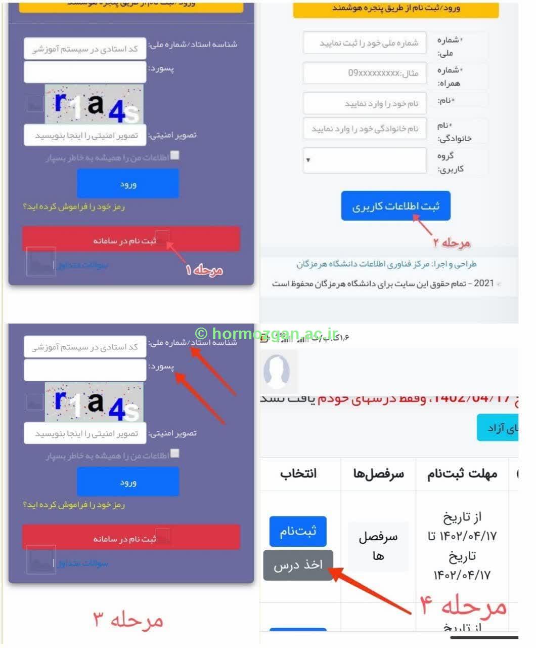 1⃣ ابتدا وارد سامانه شده و روی ثبت نام در سامانه کلیک می کنید ( نوار قرمز رنگ)