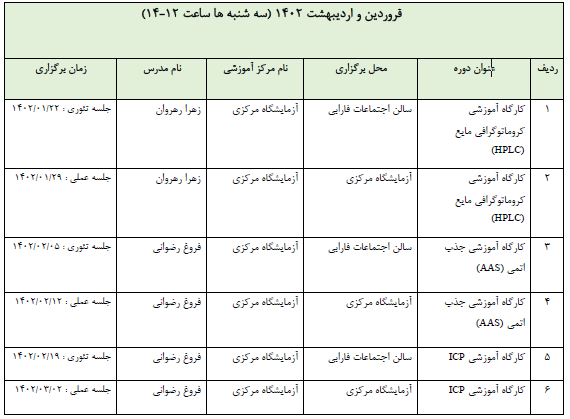 - دوره ایمنی در آزمایشگاه HSE (دانشجویان گروه مهندسی ایمنی و بازرسی فنی)