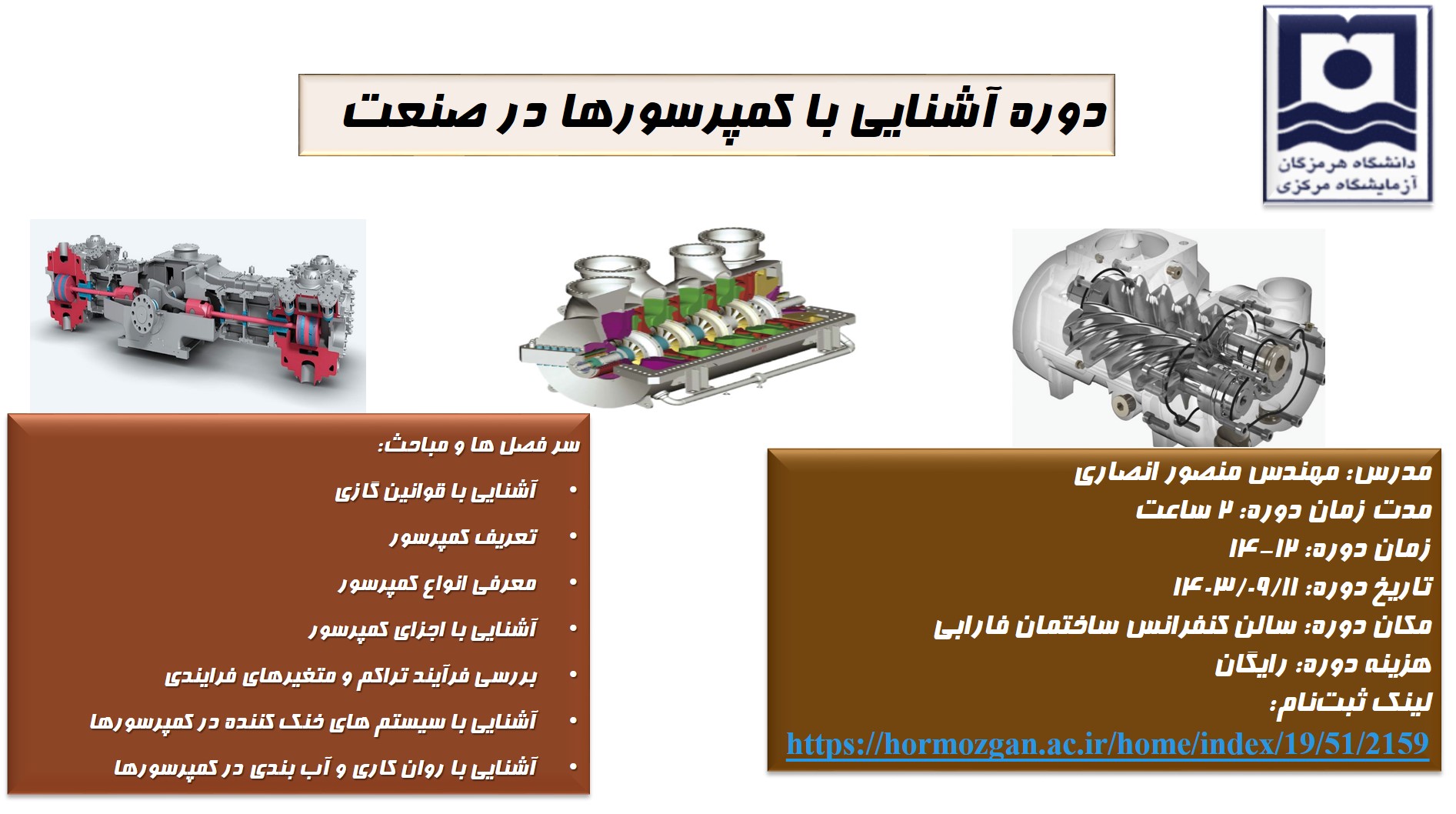 برگزاری دوره آشنایی با کمپرسورها در صنعت