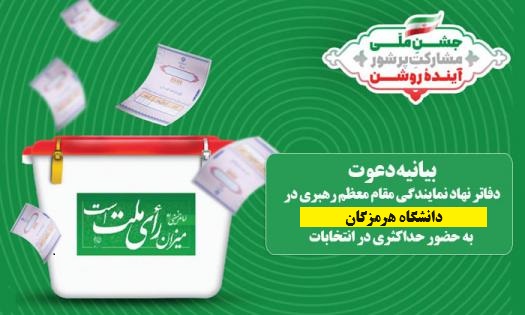 بیانیه دعوت دفتر نهاد نمایندگی مقام معظم رهبری در دانشگاه هرمزگان به حضور حداکثری در انتخابات