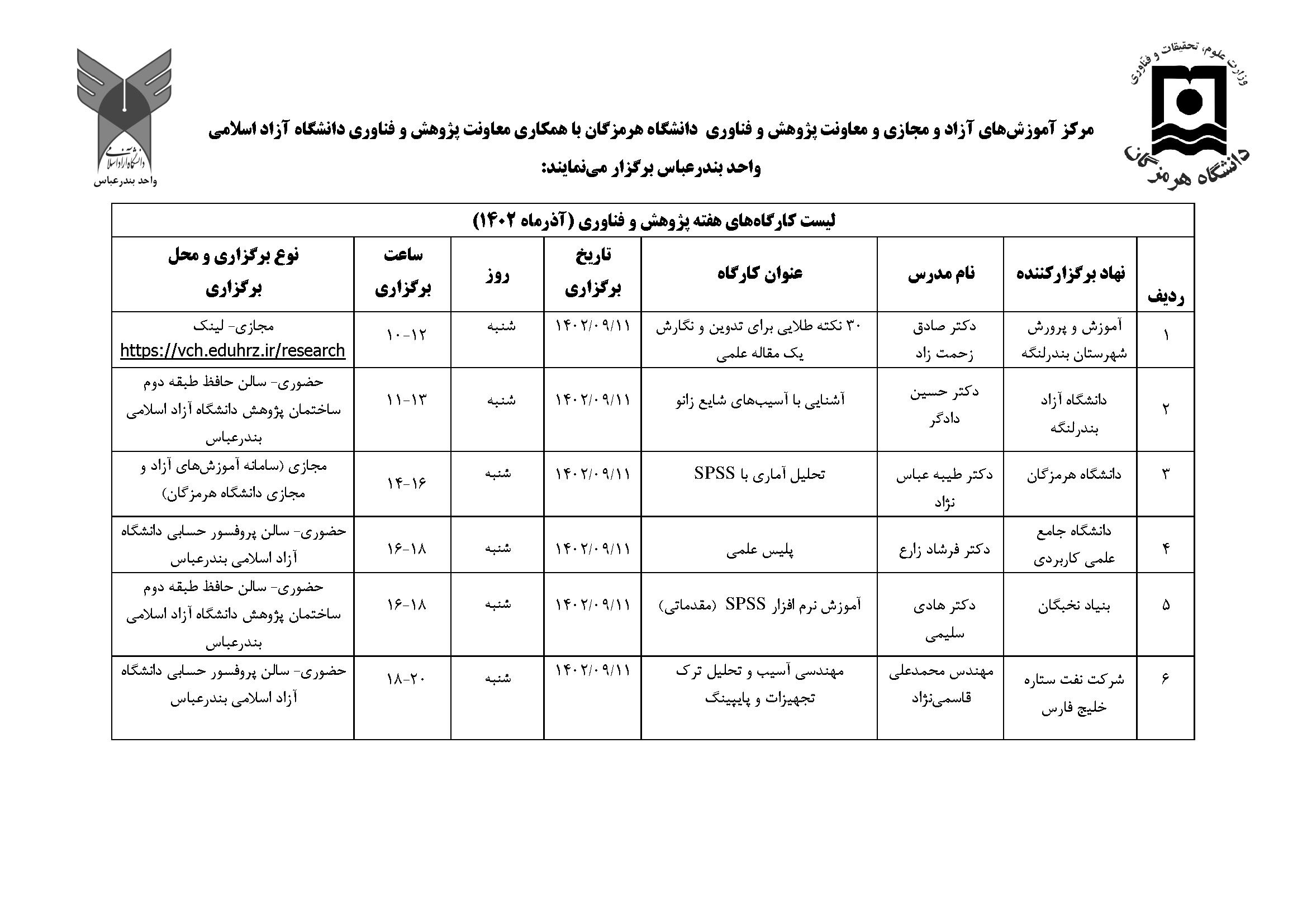 برگزاری کارگاه های هفته پژوهش و فناوری
