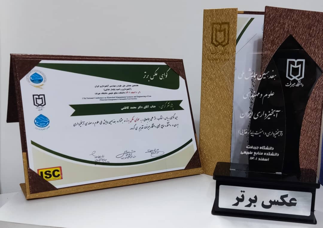 دریافت تندیس و گواهی عکس و داور برتر هفدهمین همایش ملی علوم و مهندسی آبخیزداری ایران توسط عضو هیأت علمی مرکز مطالعات و تحقیقات هرمز دانشگاه هرمزگان