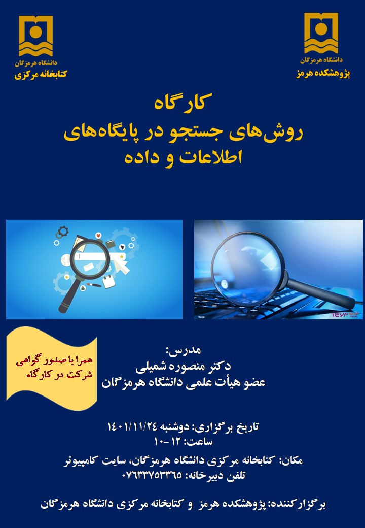 برگزاری کارگاه آموزشی روشهای جستجو در پایگاههای اطلاعات و داده