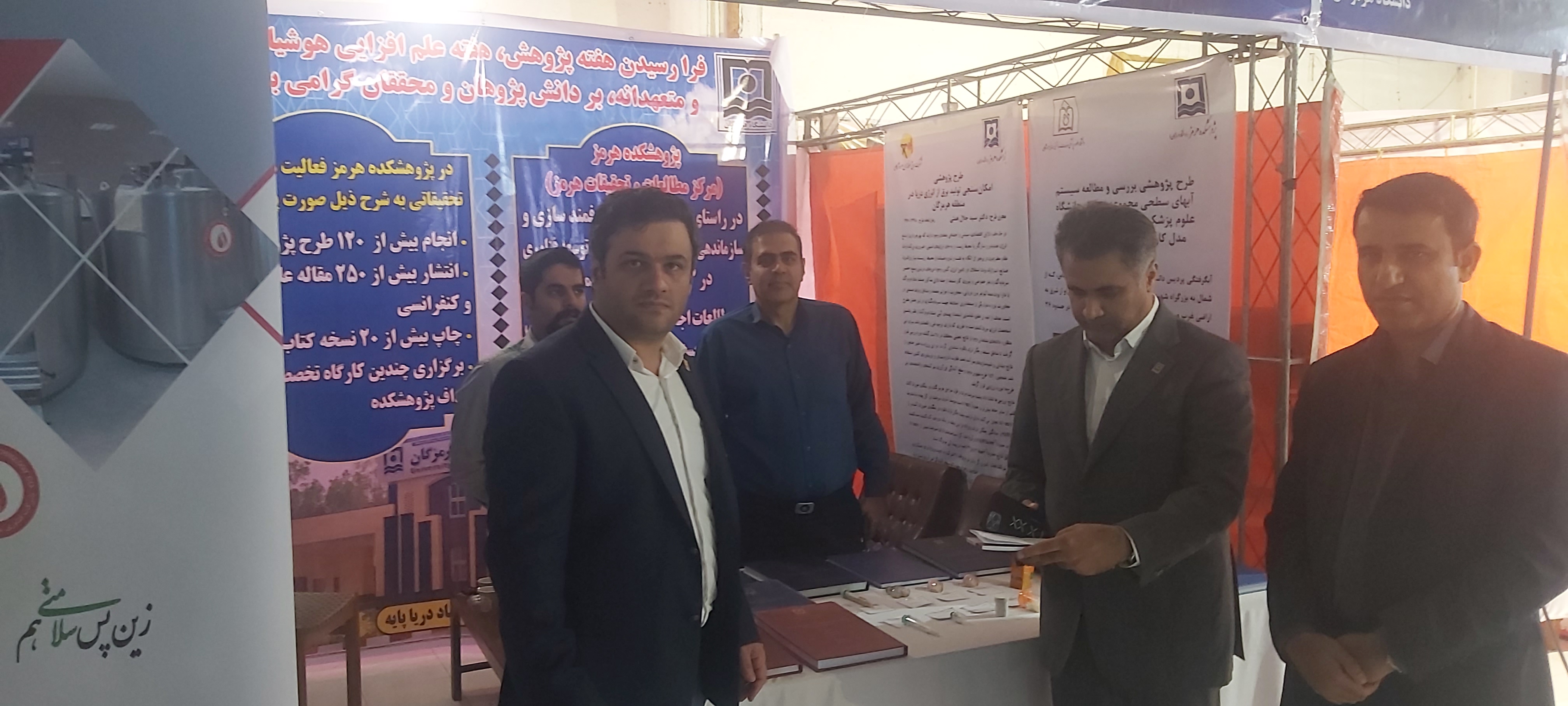بازدید ریاست محترم دانشگاه هرمزگان از غرفه دستاوردهای علمی پژوهشکده هرمز
