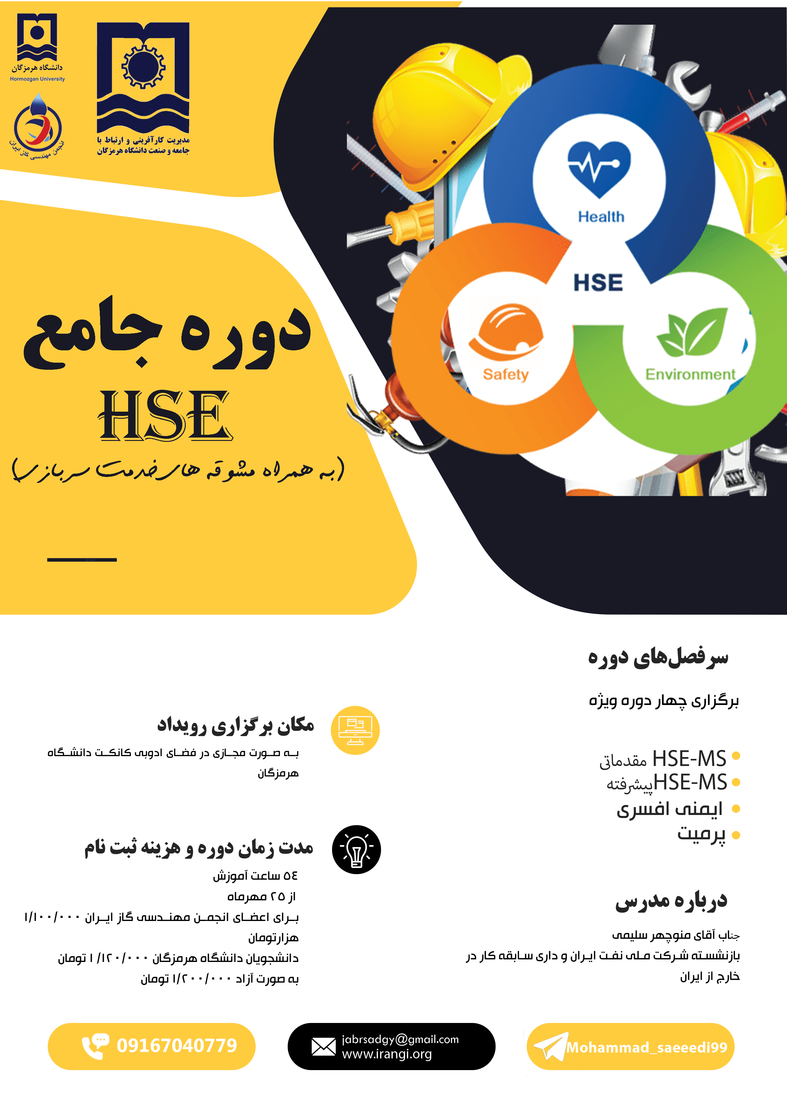 برگزاری کارگاه مهارت افزائی با عنوان دوره مهارت افزایی H S E به همراه مشوق های خدمتی