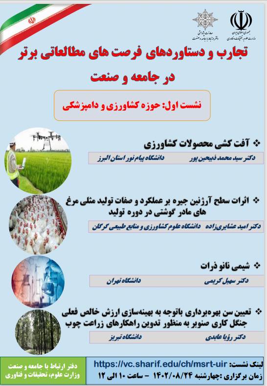 "تجارب و دستاوردهای فرصتهای مطالعاتی برتر در جامعه و صنعت"نشست اول با موضوع : "حوزه کشاورزی و دامپزشکی"
