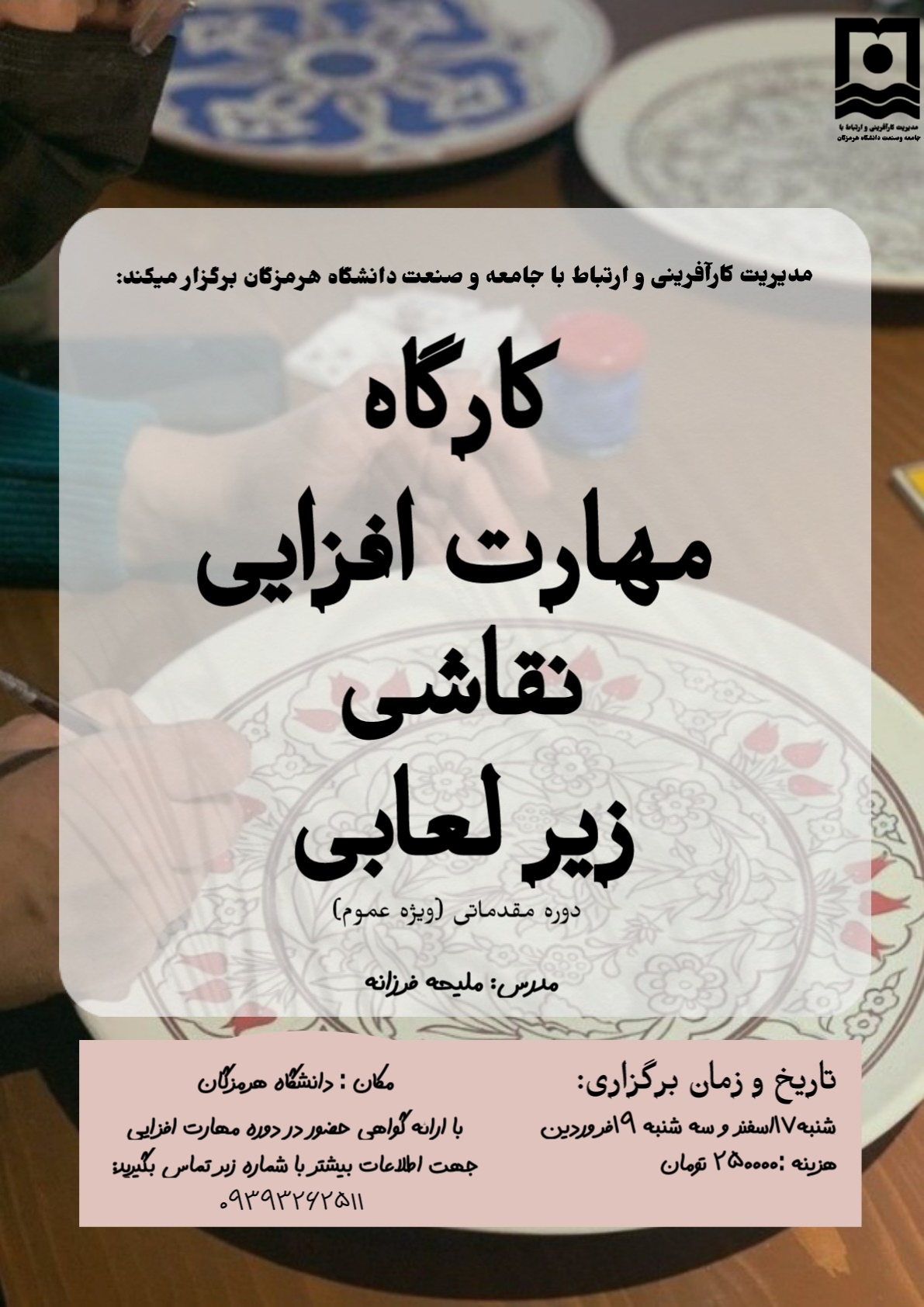 تمدید مهلت ثبت نام کارگاه مهارت افزایی نقاشی زیر لعابی دوره مقدماتی (ویژه عموم)