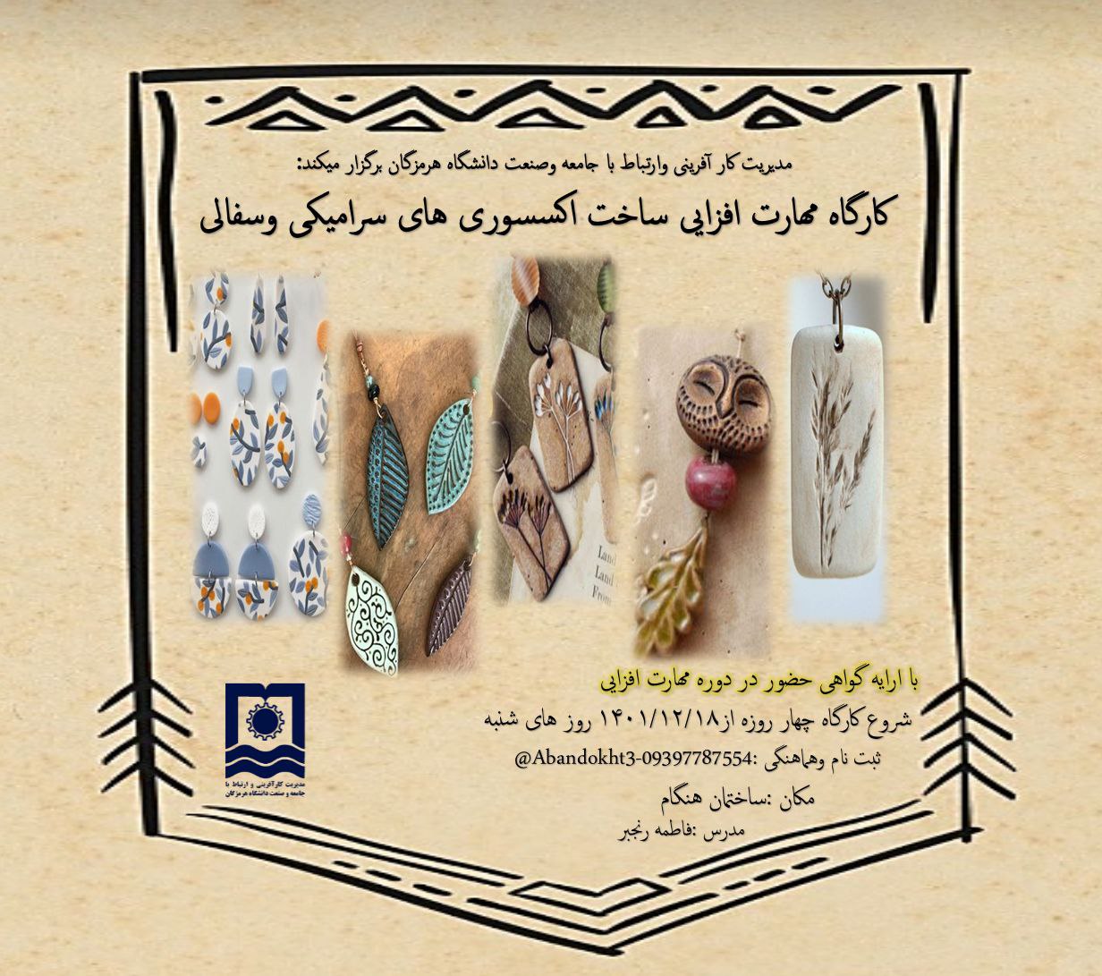 تمدید مهلت ثبت نام کارگاه مهارت افزایی ساخت اکسسوری های سرامیکی و سفالی