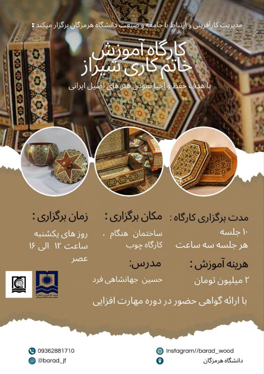 تمدید مهلت ثبت نام کارگاه مهارت افزایی خاتم کاری شیراز