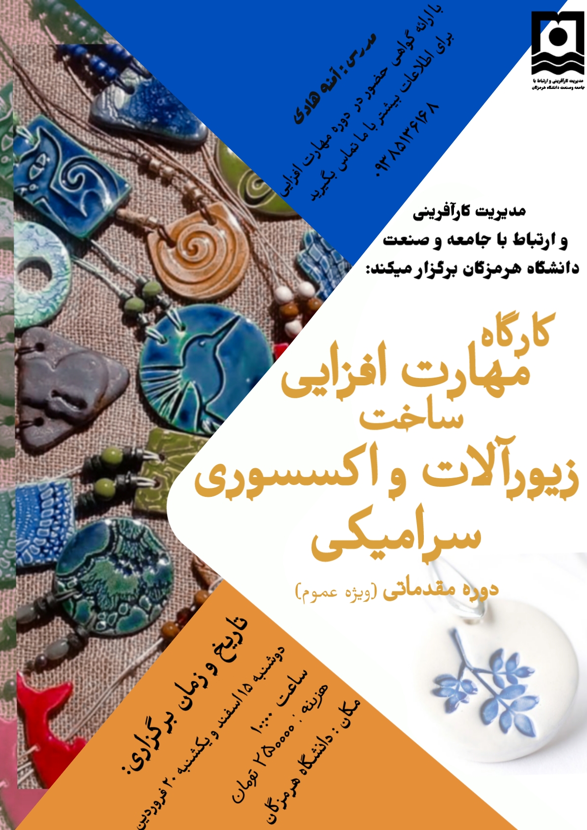 تمدید مهلت ثبت نام کارگاه مهارت افزایی ساخت زیورآلات و اکسسوری سرامیکی دوره مقدماتی (ویژه عموم)
