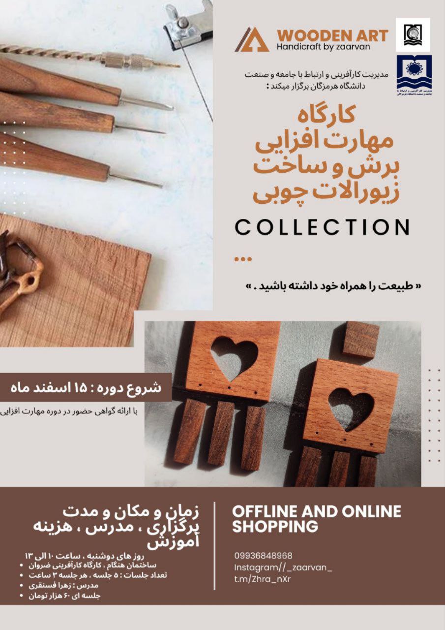 تمدید مهلت ثبت نام کارگاه مهارت افزایی برش و ساخت زیور آلات چوبی