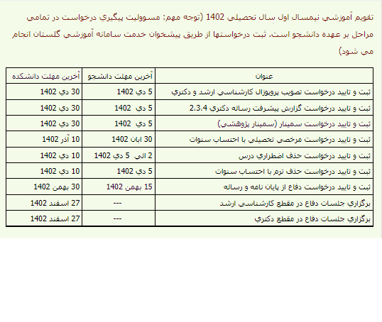 تقویم آموزشی تحصیلات تکمیلی نیمسال دوم 1402