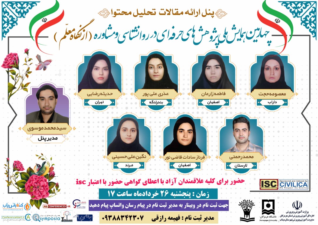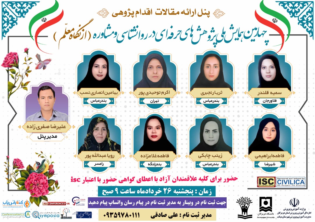 چهارمین همایش ملی پژوهش های حرفه ای در روانشناسی و مشاوره (از نگاه معلم)
