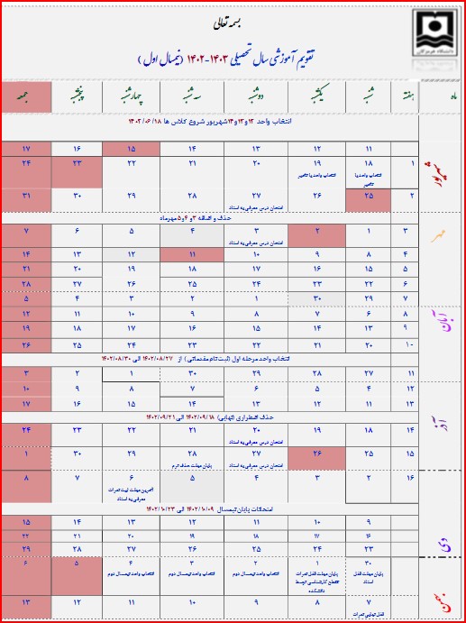 تقویم آموزشی جدید نیمسال اول سال تحصیلی 403-402