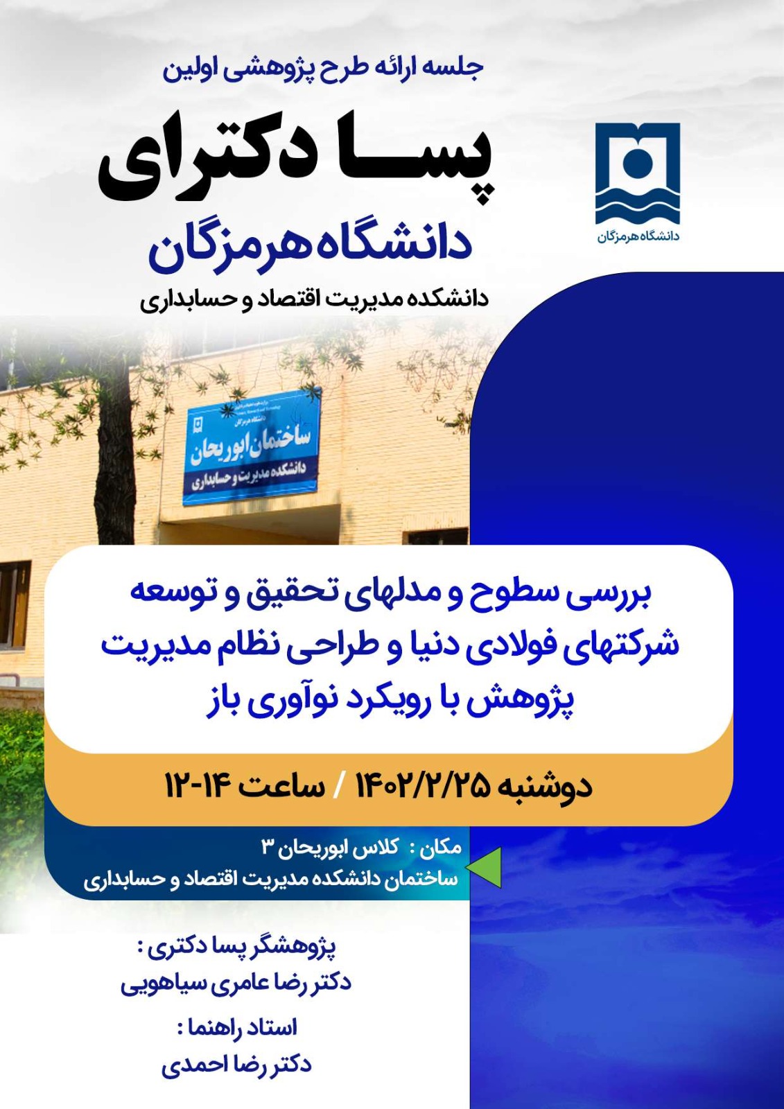 جلسه ارائه طرح پژوهشی اولین پسا دکترای در دانشگاه هرمزگان
