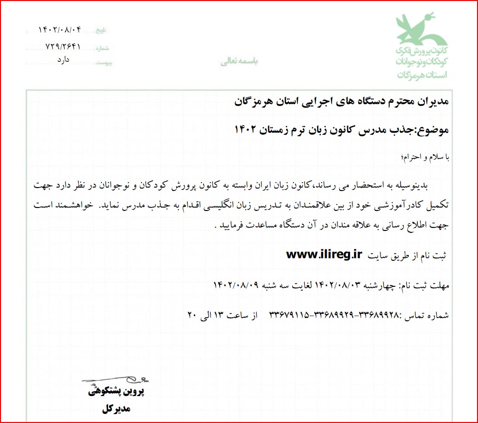 فراخوان جذب مدرس کانون پرورش فکری هرمزگان