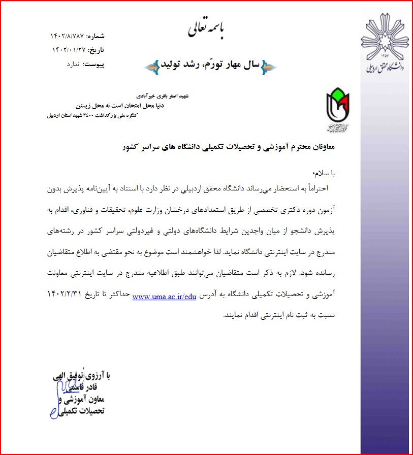 فراخوان جذب استعداد های درخشان دانشگاه محقق اردبیلی