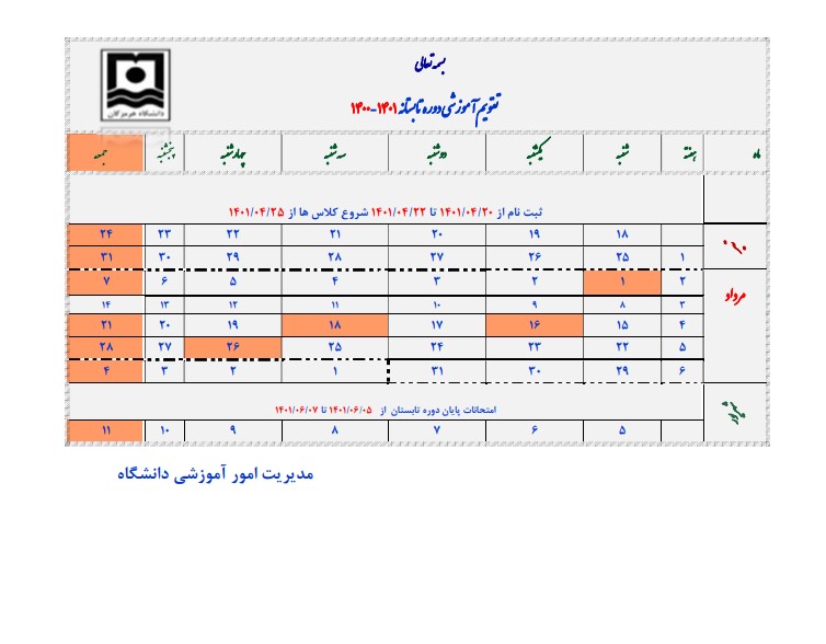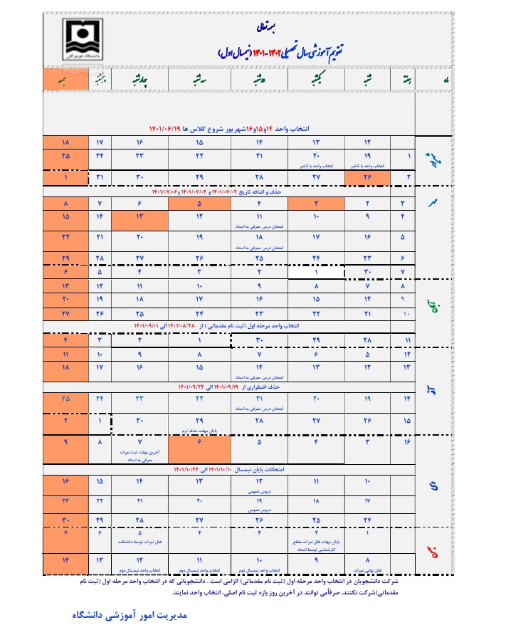 تقویم اموزشی نیمسال 4003