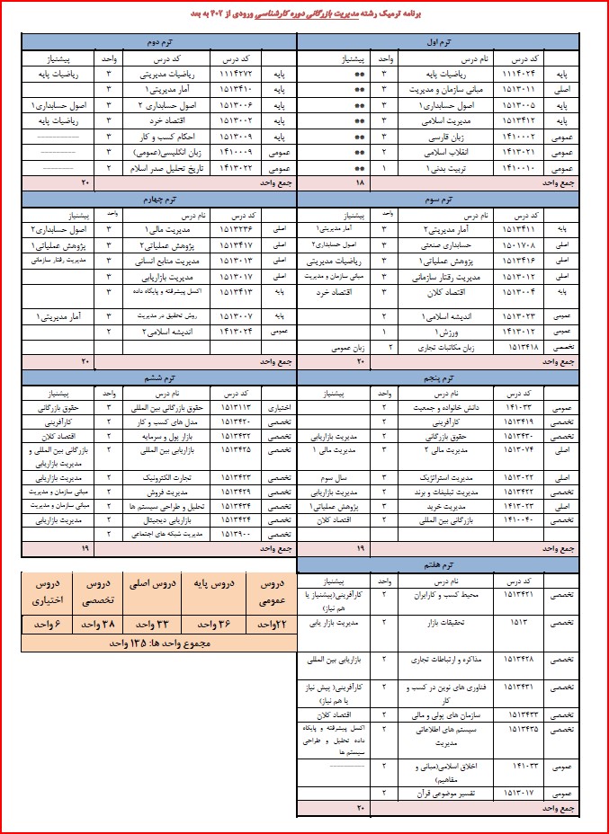 برنامه ترمیک مدیریت بازرگانی ورودی 402 به بعد