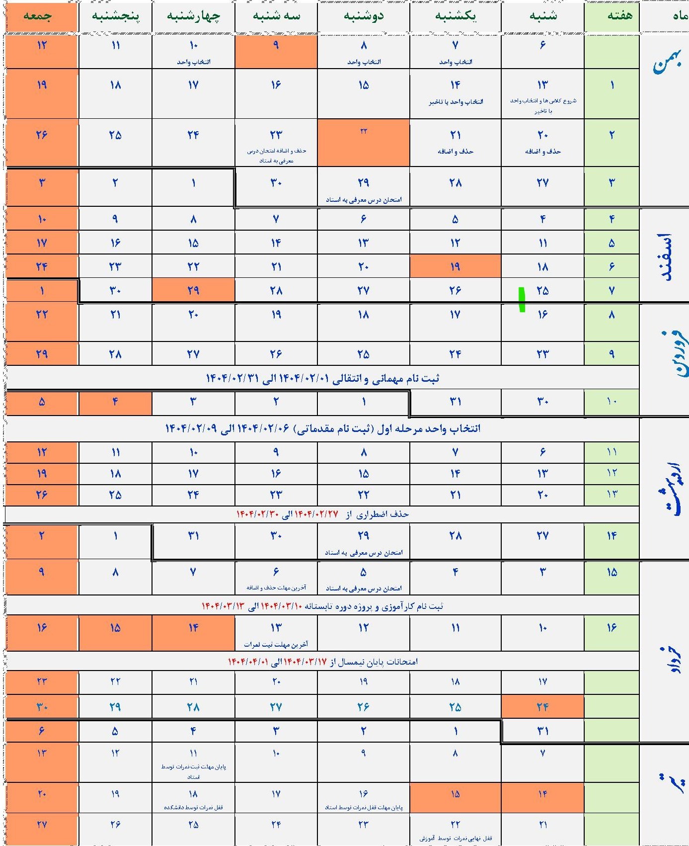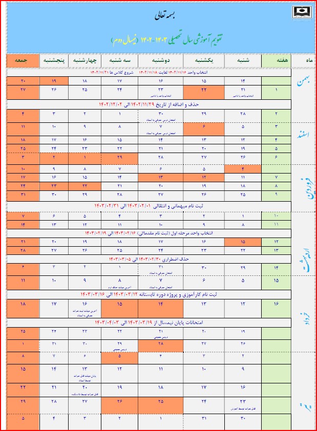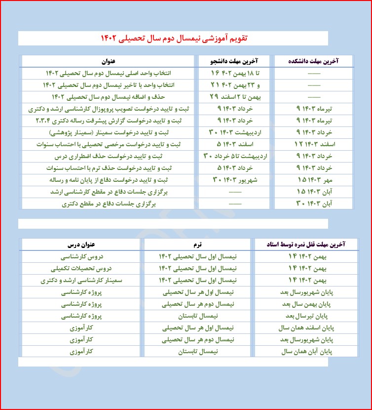تقویم آموزشی نیمسال دوم 403-402