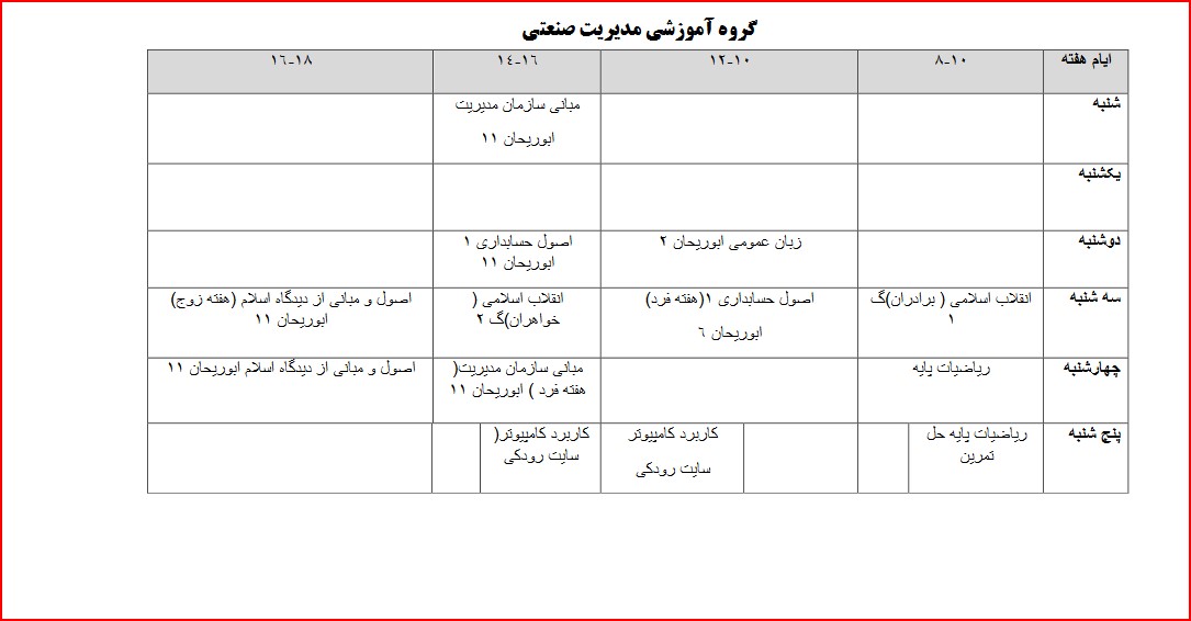 برنامه کلاسی دانشجویان جدیدالورد 402